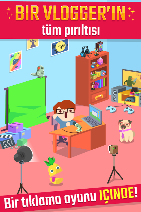 Vlogger Go Viral - Clicker, dünya genelinde videoları milyonlarca kez izlenen ünlü bir Vlogger olmaya çalıştığımız sürükleyici bir oyun.